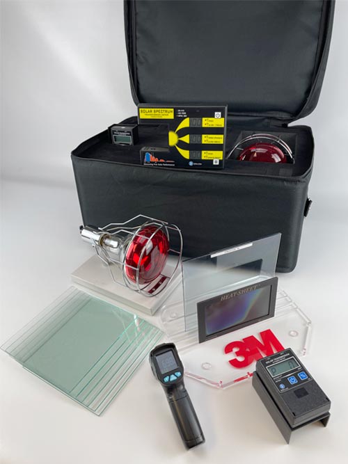 The 3M1960 has been customized exclusively for 3M Prestige Dealers and offers several accessories to elevate your sales presentation. The tools in this sales kit havebeen selected for 3M Prestige Dealers to provide a compelling demonstration of your film's ability to block unwanted solar rays. This combination of tools allows you to measure the film's performance as well as demonstrate it visually. Apply your most popular films to the glass set for a dynamic presentation, or even show lesser performing competing products.