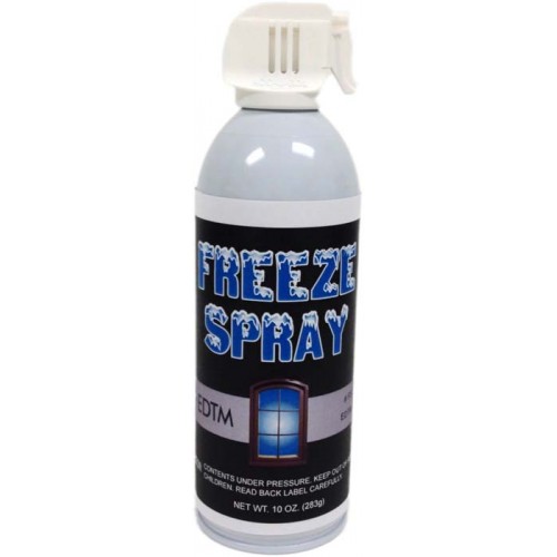 FREEZE SPRAY is also great for testing windows for seal failure. Spray near the corner of a double-pane or triple-pane window. Wipe away the frozen layer from the first surface, and check to see if there is a build-up of frost on the other side of the glass facing the air space. A layer of frost facing the inside air space confirms the presence of moisture inside the "sealed" window. Moisture inside the air space of the window is a good indicator that the seal has been jeopardized.
